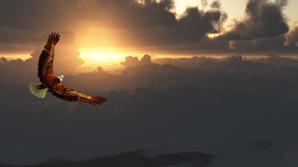 Cuando llega la tormenta el águila extiende sus alas para que el viento las tome y la lleve por encima de la tormenta, es decir, el águila no se queda en ese lugar. Vuela por encima de la tormenta y no escapa, sino que la utiliza para levantarse más alto.