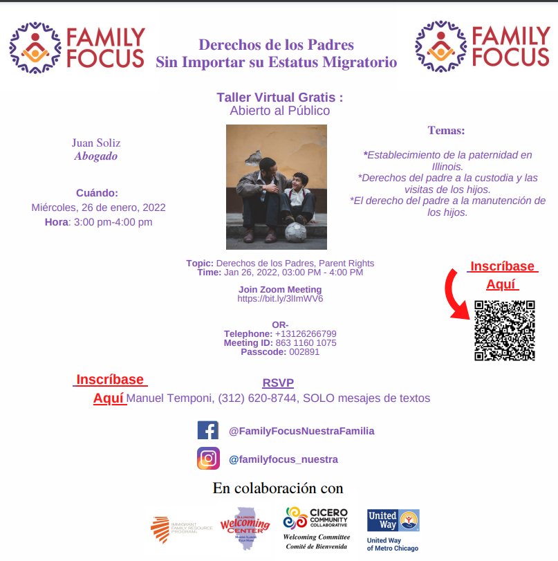 Hi everyone, Family Focus invites you to: Taller, Workshop: Derechos de los Padres Sin Importar su Estatus Migratorio,